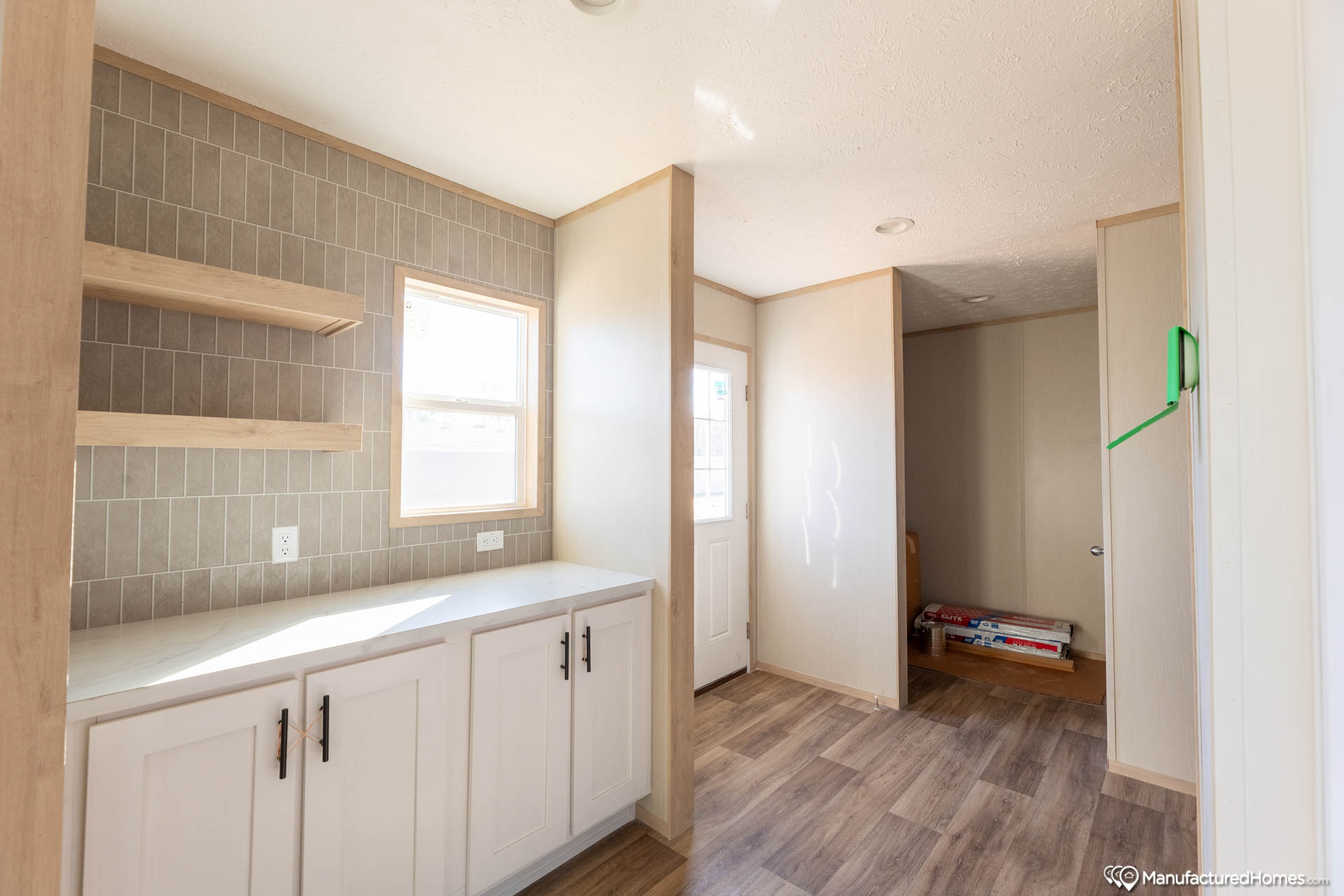 Cabinetry & Counters: DuraCraft® Laundry Room Shelves / Black Decorative Cabinet Pulls T/O / Picture Frame Style DuraCraft® Cabinet Doors Endwall Decorative DuraCraft® Endcaps